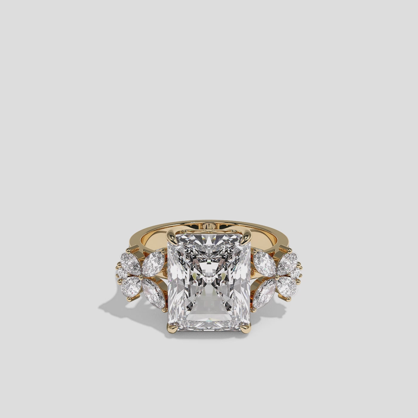 Anastasia Amarante, the exquisitely composed 20.00 carat total weight Diamond Radiant Halo Engagement Ring in 18K yellow gold, showcases the bold geometry and scintillating fire of its radiant-cut centre diamond. A radiant celebration of love and legacy, Anastasia Amarante blends refined lines with the warm richness of yellow gold, creating a regal engagement ring inspired by classic British royal elegance in the UK. Whether worn alone as a confident statement or paired with a yellow gold wedding band, this design exudes golden brilliance and stately charm.