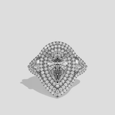 Chambord Veritas, the exquisitely composed 50.00 carat total weight Diamond Pear Halo Engagement Ring in 18K white gold, showcases the breathtaking drama of its pear-cut centre diamond. A luminous celebration of legacy and devotion, Chambord Veritas unites sculptural elegance with the cool sophistication of white gold, creating a truly monumental engagement ring for those seeking the pinnacle of luxury in the UK. Whether worn as a singular showpiece or paired with complementary fine jewellery, this design radiates timeless allure and exceptional brilliance.