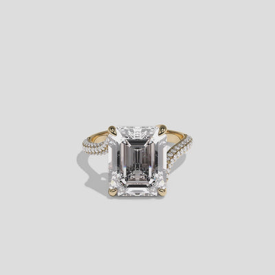 Comtesse d’Orée, the exquisitely composed 10.00 carat total weight Diamond Emerald Engagement Ring in 18K yellow gold, showcases the poised geometry and luminous clarity of its emerald-cut centre diamond. A radiant celebration of love and legacy, Comtesse d’Orée blends sleek, architectural lines with the warm richness of yellow gold, creating an opulent engagement ring inspired by classic British royal elegance in the UK. Whether worn alone as a confident statement or paired with a yellow gold wedding band, this ring exudes golden brilliance and stately charm.