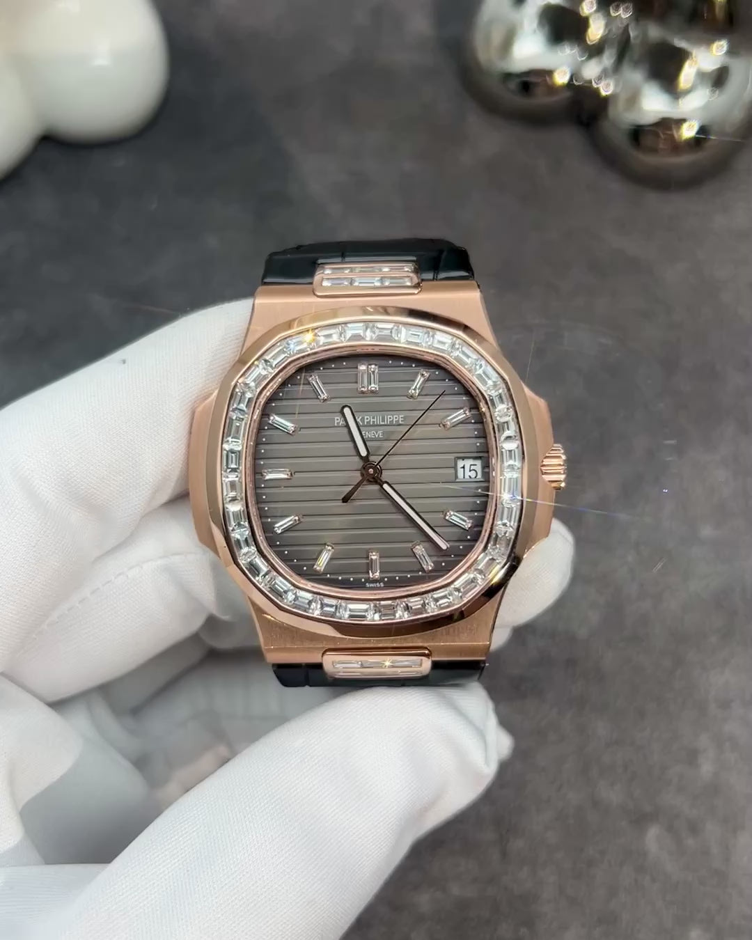 What sets this model apart is the diamond-set bezel. Carefully set with a series of brilliant-cut diamonds, the bezel exudes luxury and adds a touch of sparkle to the watch’s overall appearance. The diamonds are meticulously chosen and arranged to maintain the watch’s clean lines while enhancing its aesthetic appeal. This combination of rose gold and diamonds makes the 5811/1G-001 a truly standout piece, blending the charm of traditional watchmaking with a touch of glamour.
