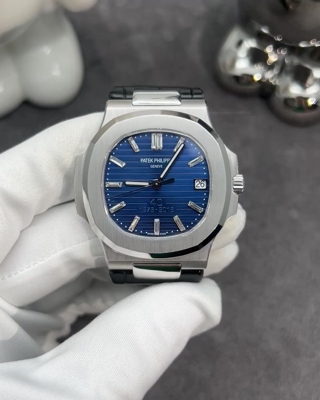 This model is ideal for watch enthusiasts and collectors who are drawn to the iconic design of the Nautilus but are looking for something with a slightly more understated and elegant flair. The Patek Blue dial, paired with the luxury leather strap, brings a sense of modernity and elegance to the traditional Nautilus style, elevating it to a more formal and sophisticated level.