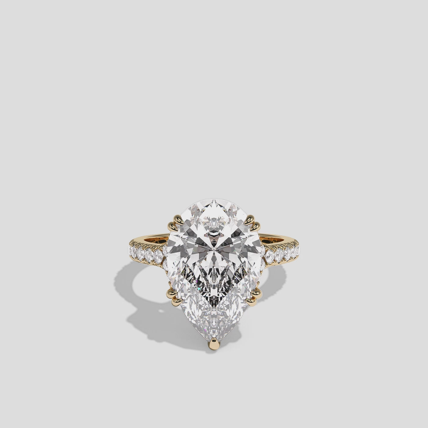 Rochefort Royale, the exquisitely composed 12.00 carat total weight Diamond Pear Halo Engagement Ring in 18K yellow gold, showcases the romantic sweep and luminous fire of its pear-cut centre diamond. A radiant celebration of love and legacy, Rochefort Royale blends the graceful teardrop silhouette with the warm richness of yellow gold, creating an opulent engagement ring inspired by classic British royal elegance in the UK. Whether worn alone as a confident statement or paired with a yellow gold wedding band, this ring exudes golden brilliance and stately charm.