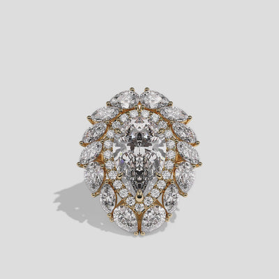 Victoria Heritage, the exquisitely composed 50.00 carat total weight Diamond Pear Halo Engagement Ring in 18K yellow gold, showcases the breathtaking drama of its pear-cut centre diamond. A radiant celebration of love and royal-inspired legacy, Victoria Heritage blends romantic lines with the warm richness of yellow gold, creating an opulent engagement ring for those who cherish classic British grandeur in the UK. Whether worn alone as a commanding statement or paired with a yellow gold wedding band, this ring exudes golden radiance and stately charm.