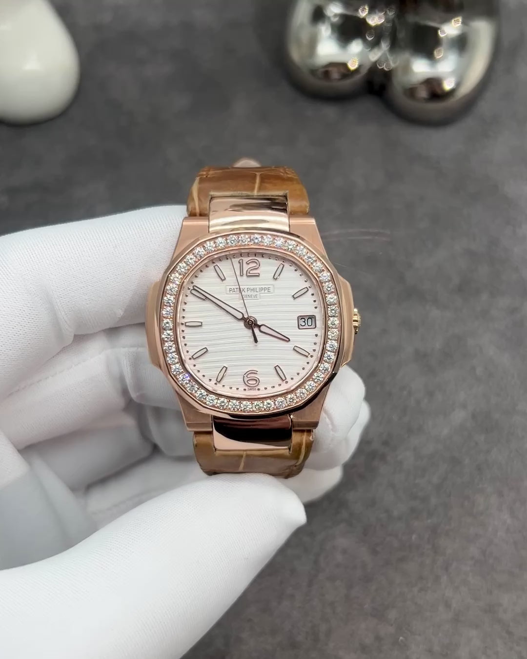 The Patek Philippe Nautilus 5811/1G-001 for women is a true embodiment of luxury and precision. Its combination of modern design, meticulous craftsmanship, and Patek Philippe’s iconic aesthetic makes it an ideal choice for those who appreciate both timeless elegance and innovative watchmaking. The warm glow of the 18K rose gold case and bracelet, combined with the sophisticated